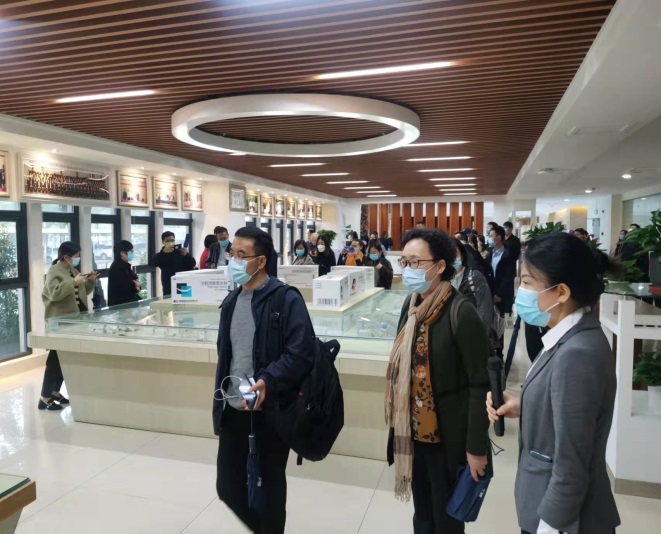 下午2點,大巴車來到位于海口國家高新區藥谷三橫路8號的皇隆廠區。來自全國各地的研發CRO公司以及制藥企業等大約70位高層人士對公司進行了實地參觀和交流。嘉賓們首先對公司展廳進行了參觀游覽,皇隆制藥常務副總史江永女士介紹了公司的發展過程和產品情況。