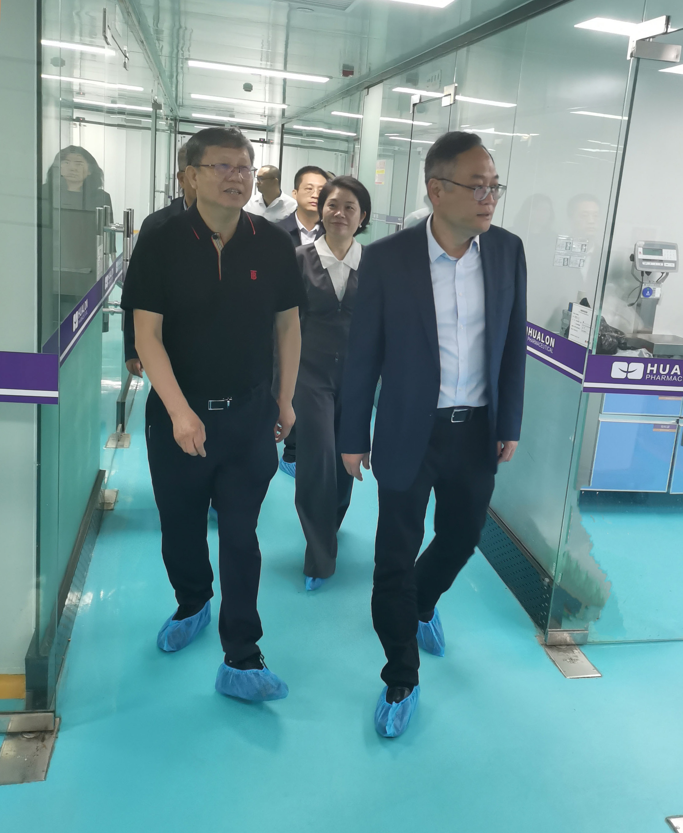 丁飛主席一行參觀了公司展廳、企業(yè)技術(shù)研發(fā)中心,詳細(xì)了解了企業(yè)的發(fā)展歷程、產(chǎn)品研發(fā)創(chuàng)新情況。參觀過(guò)程中,丁飛主席高度肯定和贊揚(yáng)了皇隆制藥深植海南醫(yī)藥行業(yè)的發(fā)展歷程。